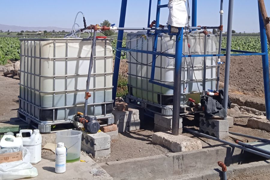El cultivo de Chlorella se desarrolló utilizando agua de riego empleada en la actividad agrícola, la cual fue sometida a análisis de nutrientes y ajustes específicos para adecuarla a los requerimientos del crecimiento de la microalga.